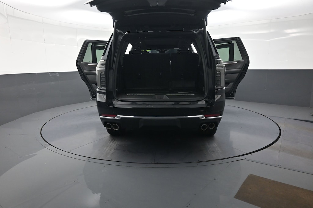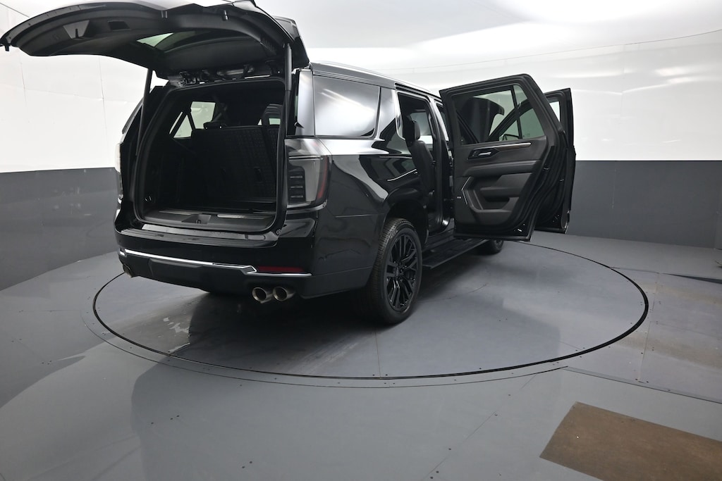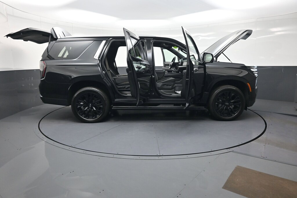 Designed to impress, the Tahoe Premier's exterior boasts a striking Black finish, complemented by the Premium Dark Essentials Package, which includes Black nameplates, Black mirror caps, and 22" multi-spoke Gloss Black wheels. The LED headlamps and daytime running lamps add a touch of modern elegance, while the power-retractable assist steps provide effortless access.